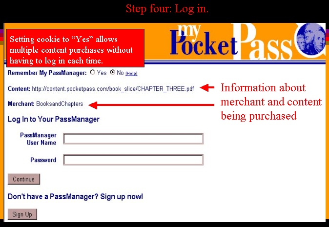 To purchase the selection, you are directed to login in to PassManager.